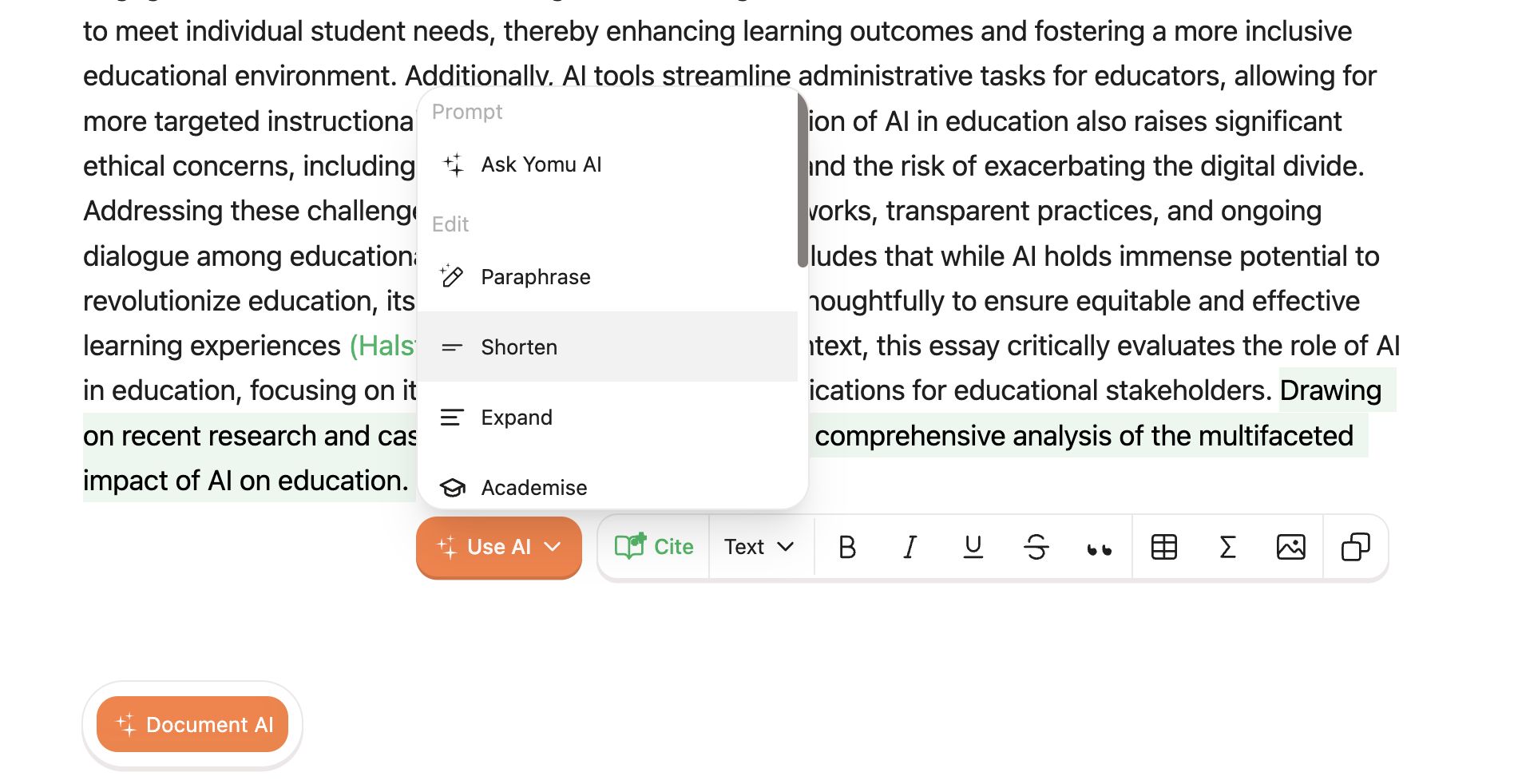 Explanding and Shortening Essay Content with Yomu AI